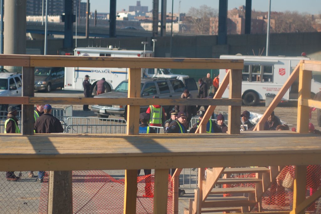 Temporary wooden boarding platform @ the Yankee Stadium Park & Ride. Photo taken by Brian Weinberg, 12/21/2005.