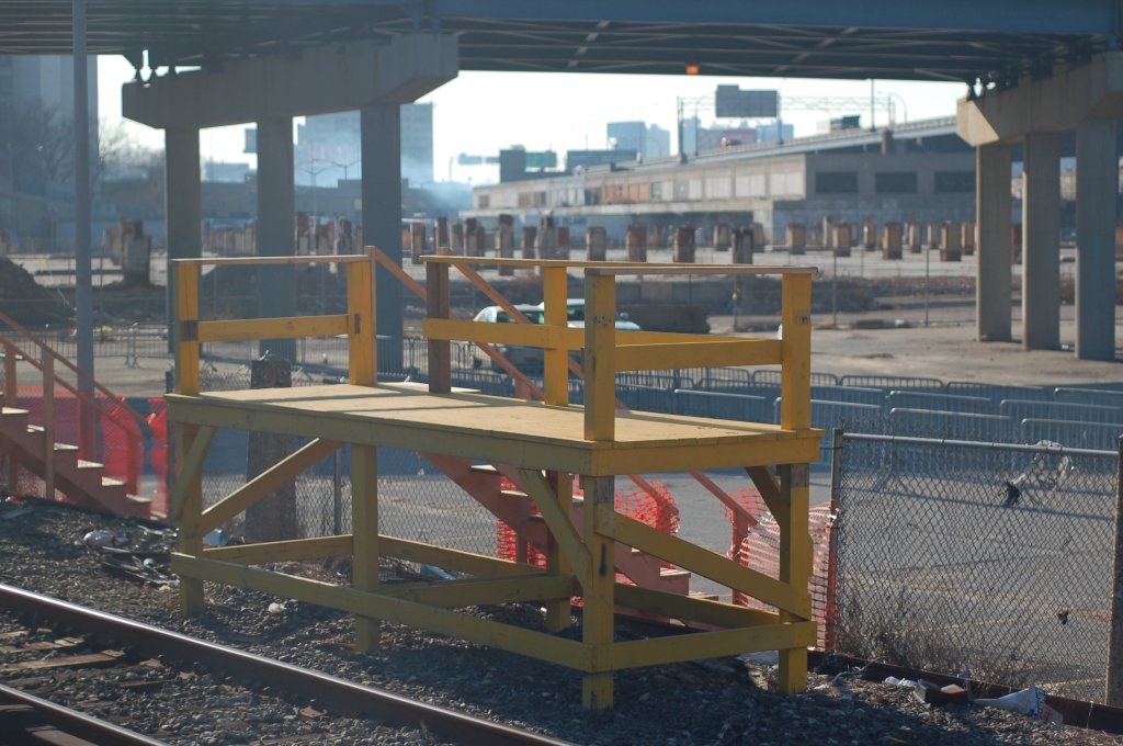 Temporary wooden boarding platform @ the Yankee Stadium Park & Ride. Photo taken by Brian Weinberg, 12/21/2005.