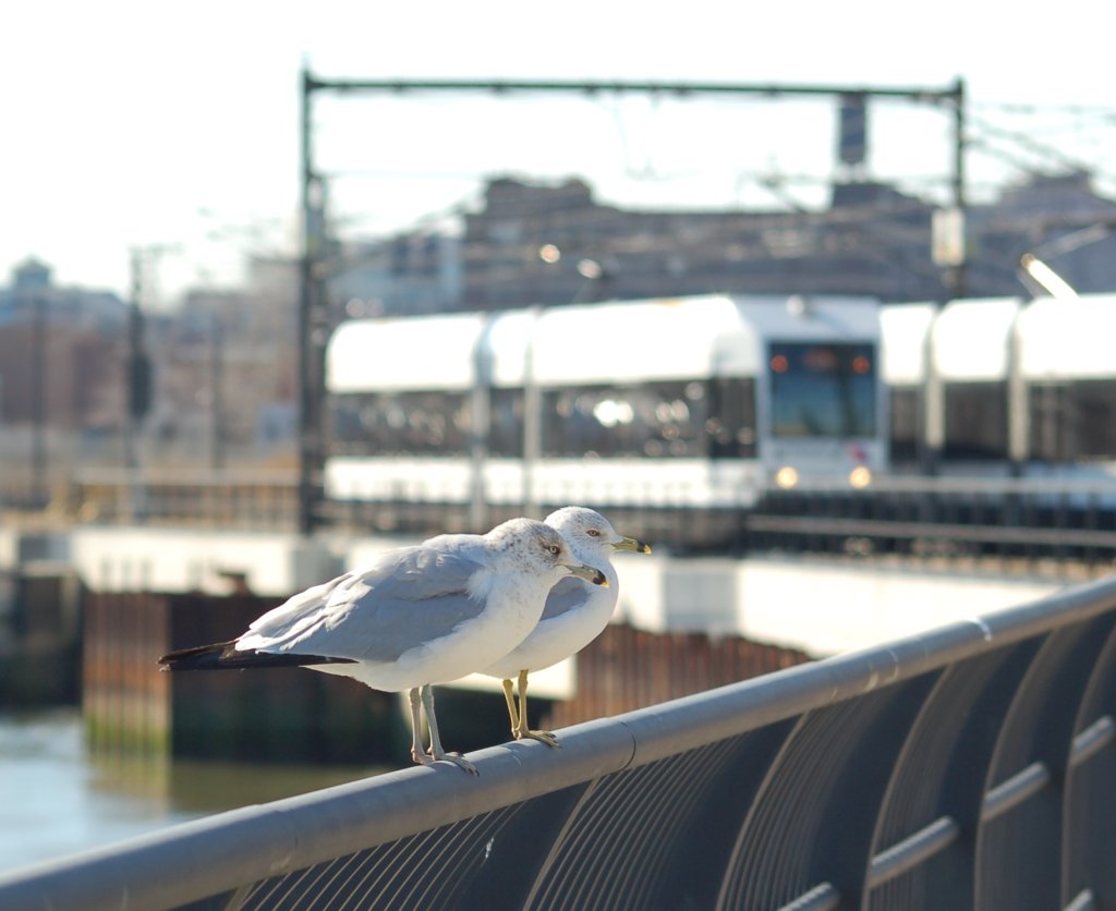 NJ Transit HBLR LRV 2042B and the birds @ Hoboken Terminal. Photo taken by Brian Weinberg, 2/19/2006. - NJ Transit HBLR LRV 2042B and the birds @ Hoboken Terminal. Photo taken by Brian Weinberg, 2/19/2006.