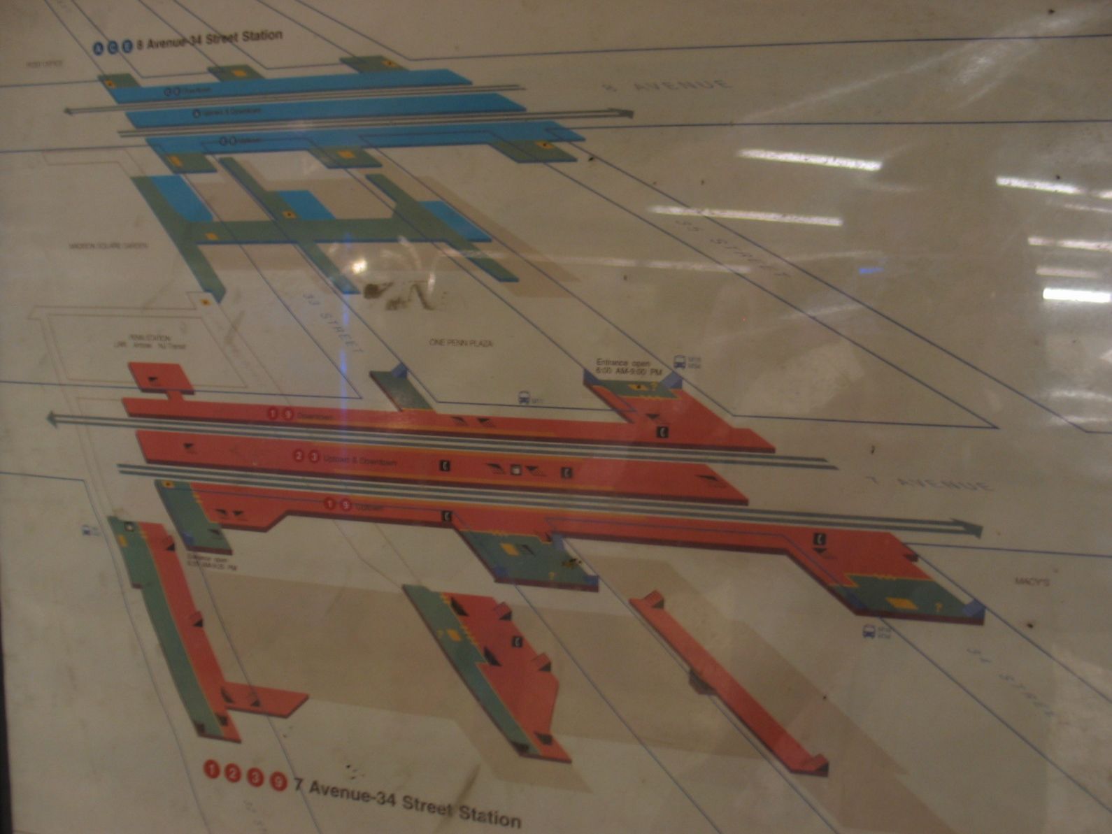 Station diagram for 34 St - 7 Av. Photo taken by Brian Weinberg, 08/06/2003.