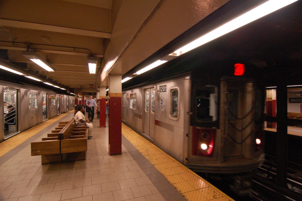 R-142 1201 @ Brooklyn Bridge (5) - front of the northbound platform (looking south). Photo taken by Brian Weinberg, 6/28/2006. - R-142 1201 @ Brooklyn Bridge (5) - front of the northbound platform (looking south). Photo taken by Brian Weinberg, 6/28/2006.