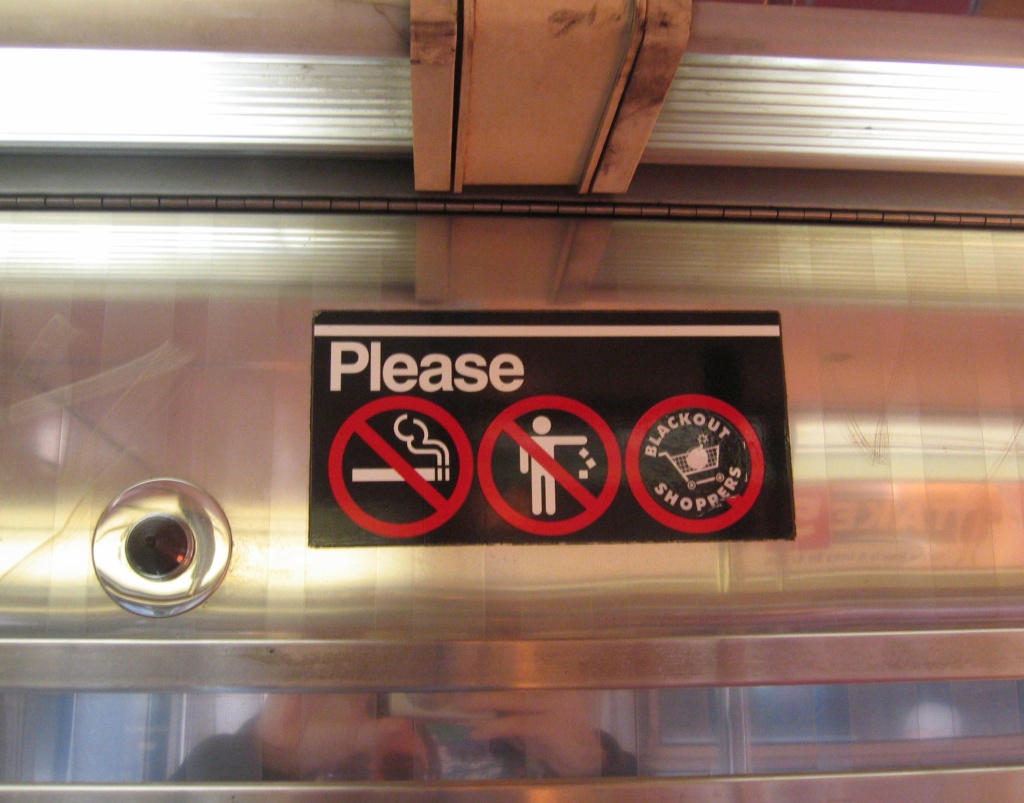 Blackout Shoppers...Please sticker on R-62A 2330 (1). Photo taken by Brian Weinberg, 3/7/2008.