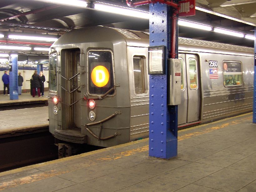 R-68 2560 @ 59 St - Columbus Circle (D). Photo taken by Brian Weinberg, 02/02/2003. (106kb)
