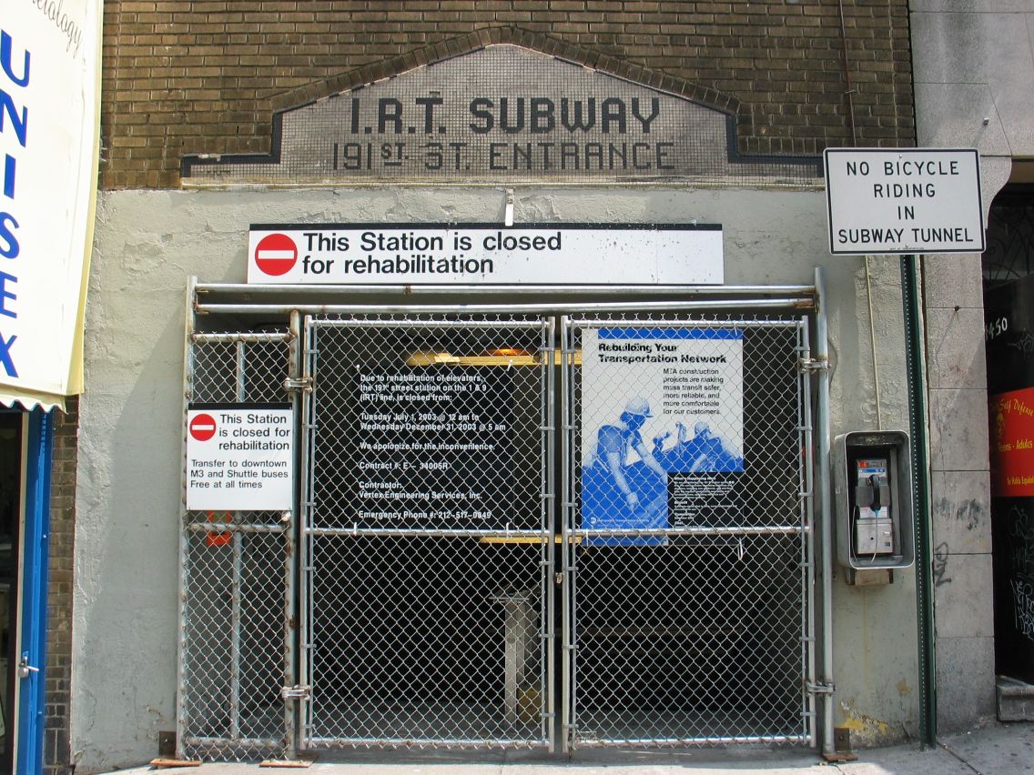 Broadway pedestrian tunnel @ 191 St (1). Tunnel was closed while the station was rehabilitated. Photo taken by Brian Weinberg, 8/3/2003.