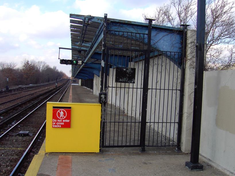 PDRM1643 || Fixed fence/gate at the north end of the nb platform at Aqueduct - North Conduit Av (A). A C/R was killed here on 01/18/2003. Photo by Brian Weinberg, 01/19/2003.