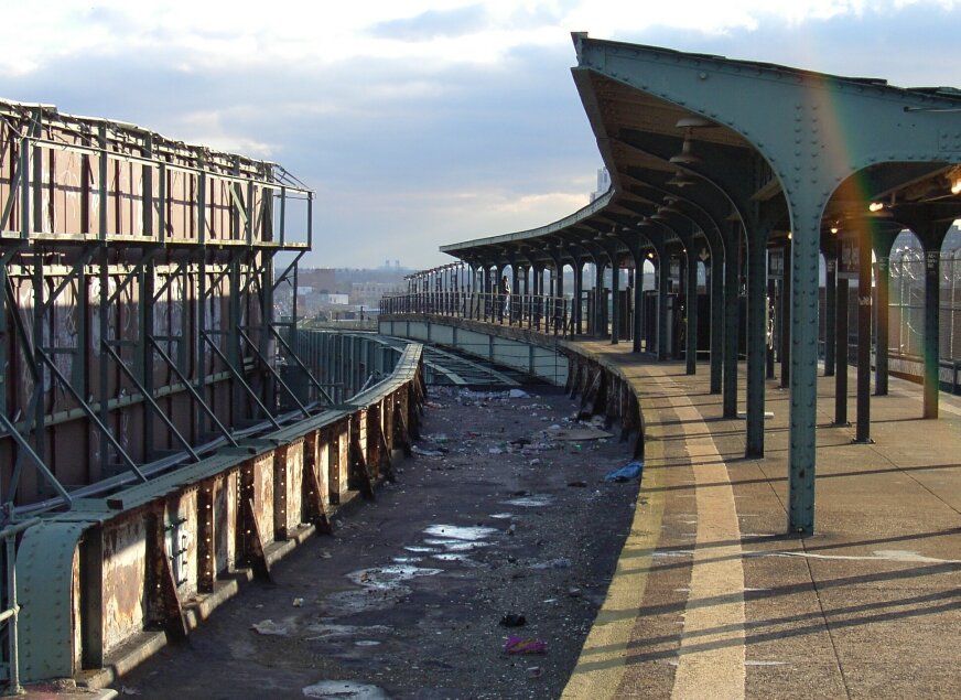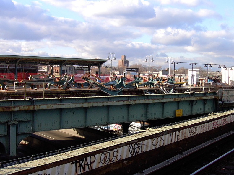 Long abandoned trackway @ the soon to be abandoned Manhattan-bound Atlantic Av (L) platform. Photo by Brian Weinberg, 11/27/2002