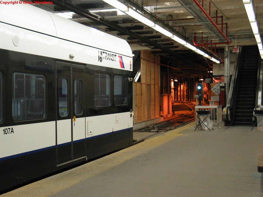 NJT NCS LRV 107A @ inbound platform at Newark Penn Station. Photo taken by Brian Weinberg, 2/16/2004.