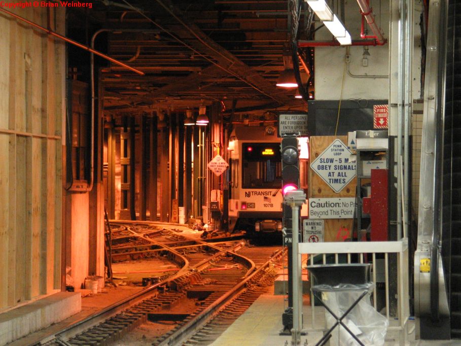 NJT NCS LRV 107B @ inbound platform at Newark Penn Station. Photo taken by Brian Weinberg, 2/16/2004.