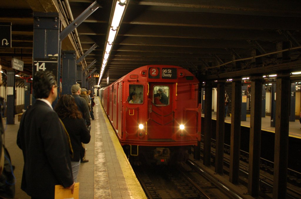 The Train of Many Colors ran from Grand Central to Atlantic Av and then back up the West Side to 96 St in honor of the 100th Anniversary of the IRT beginning service to Atlantic Av in Brooklyn.