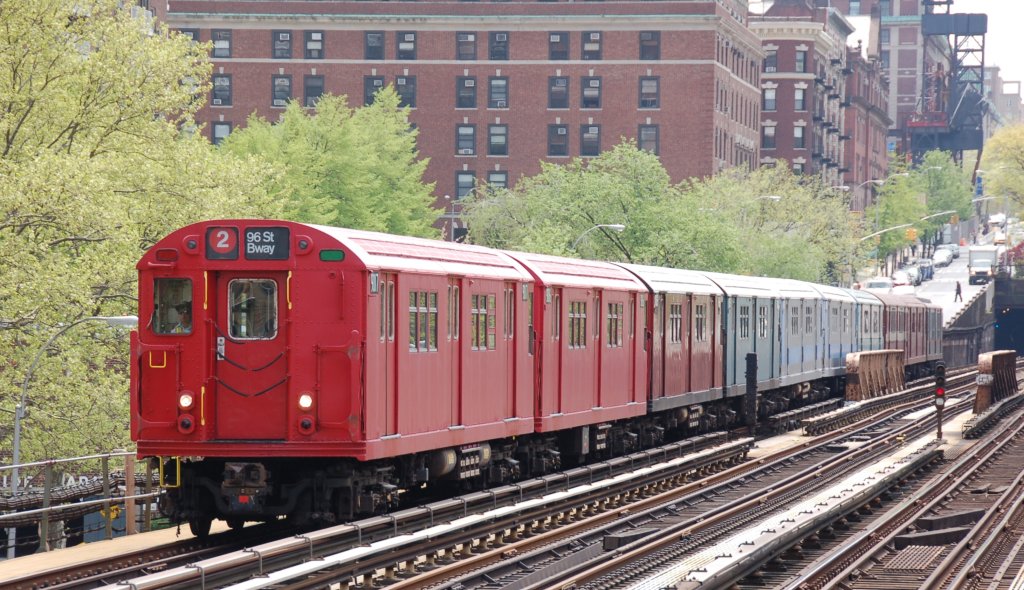 The Train of Many Colors ran from Grand Central to Atlantic Av and then back up the West Side to 96 St in honor of the 100th Anniversary of the IRT beginning service to Atlantic Av in Brooklyn. Here it is heading to 207 St Yard out-of-service after the trip ended.