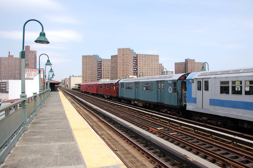 The Train of Many Colors ran from Grand Central to Atlantic Av and then back up the West Side to 96 St in honor of the 100th Anniversary of the IRT beginning service to Atlantic Av in Brooklyn. Here it is heading to 207 St Yard out-of-service after the trip ended.