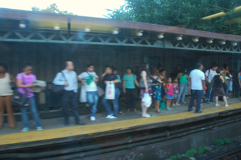 Dyckman St (1). Note crowded platform due to two discharged trains. - Dyckman St (1). Note crowded platform due to two discharged trains.