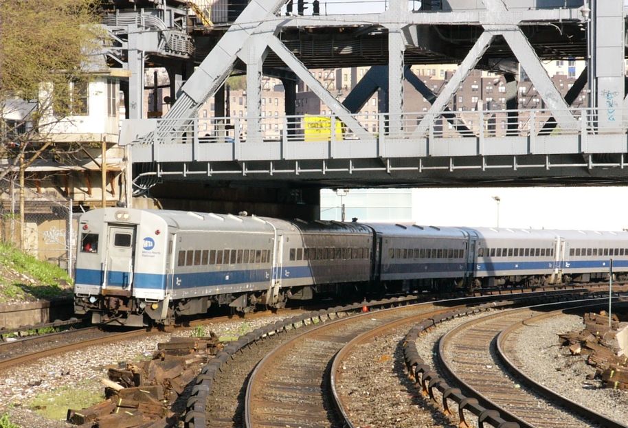 MNR ACMU 1100 series @ Marble Hill (Hudson Line). The days are numbered for these cars. Photo taken by Brian Weinberg, 4/27/2004