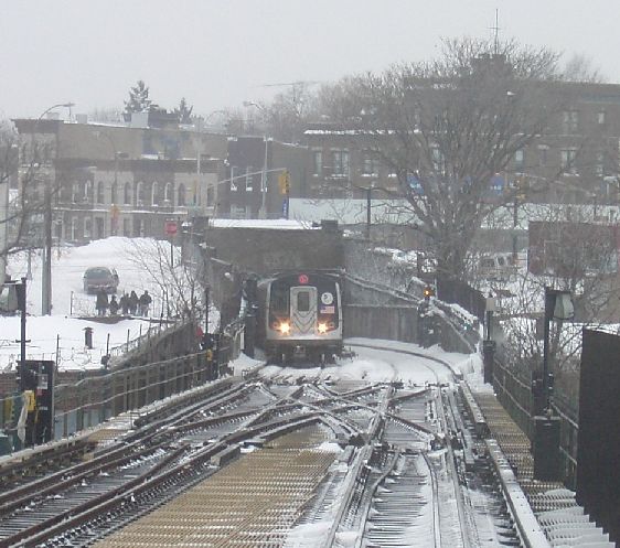 R-143 8259 @ Broadway Jct (L). Photo taken by Brian Weinberg, 02/17/2003. This was the Presidents Day Blizzard of 2003.