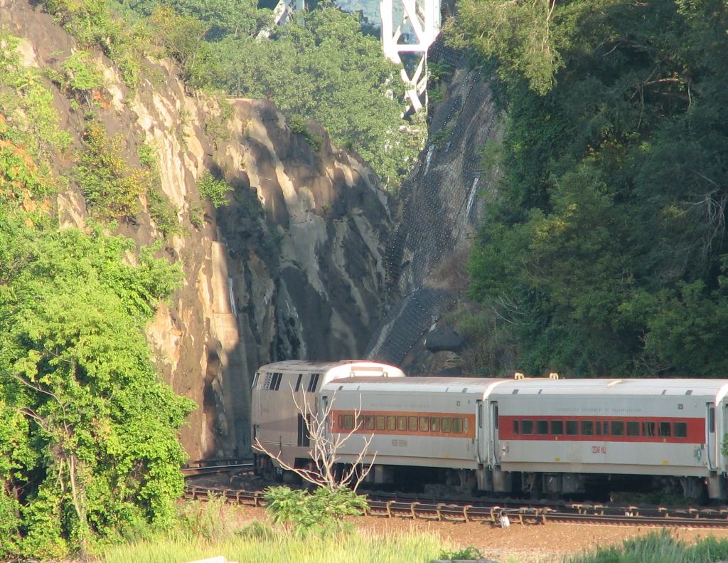 MNCR P32AC-DM 220 and Shoreliner coaches Roger Sherman and Cedar Hill @ Marble Hill at the rock cut (MNCR Hudson Line). Photo ta