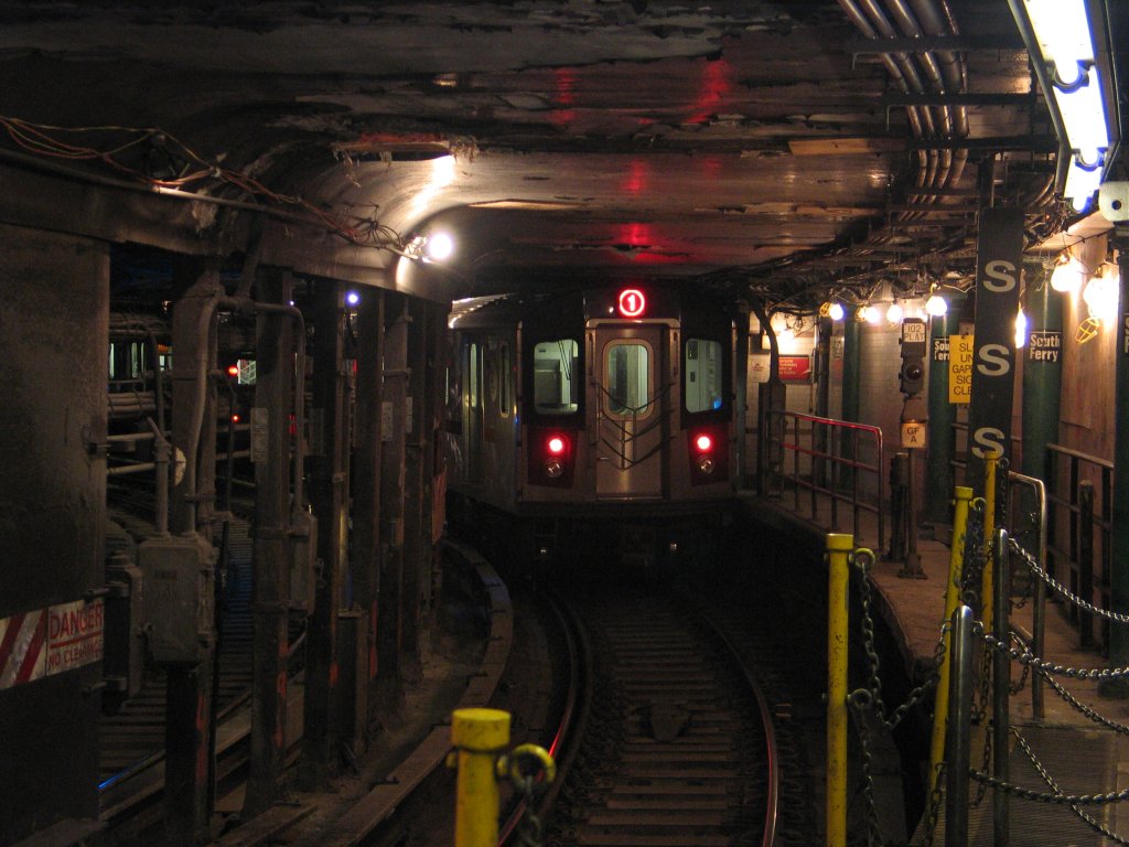 R-142 @ South Ferry (2) but signed as a (1) [G.O. had only 2 and 5 trains stopping at South Ferry]. Photo taken by Brian Weinber