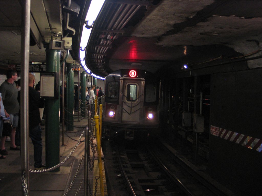 R-142 6766 @ South Ferry (5) [G.O. had only 2 and 5 trains stopping at South Ferry]. Photo taken by Brian Weinberg, 9/11/2005.