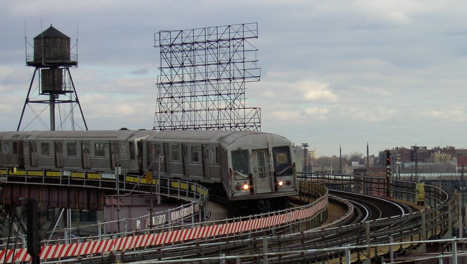 R-40 @ Queensboro Plaza (N). Photo by Brian Weinberg, 01/09/2003.
