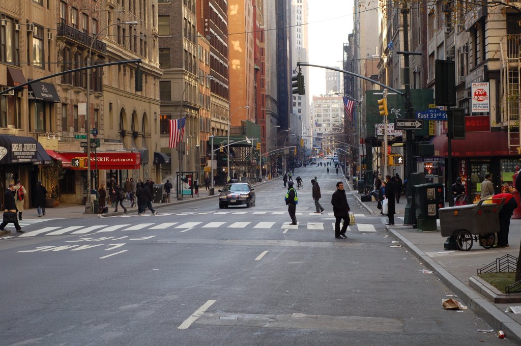 Empty streets due to the transit strike. Madison Avenue. Photo taken by Brian Weinberg, 12/21/2005.
