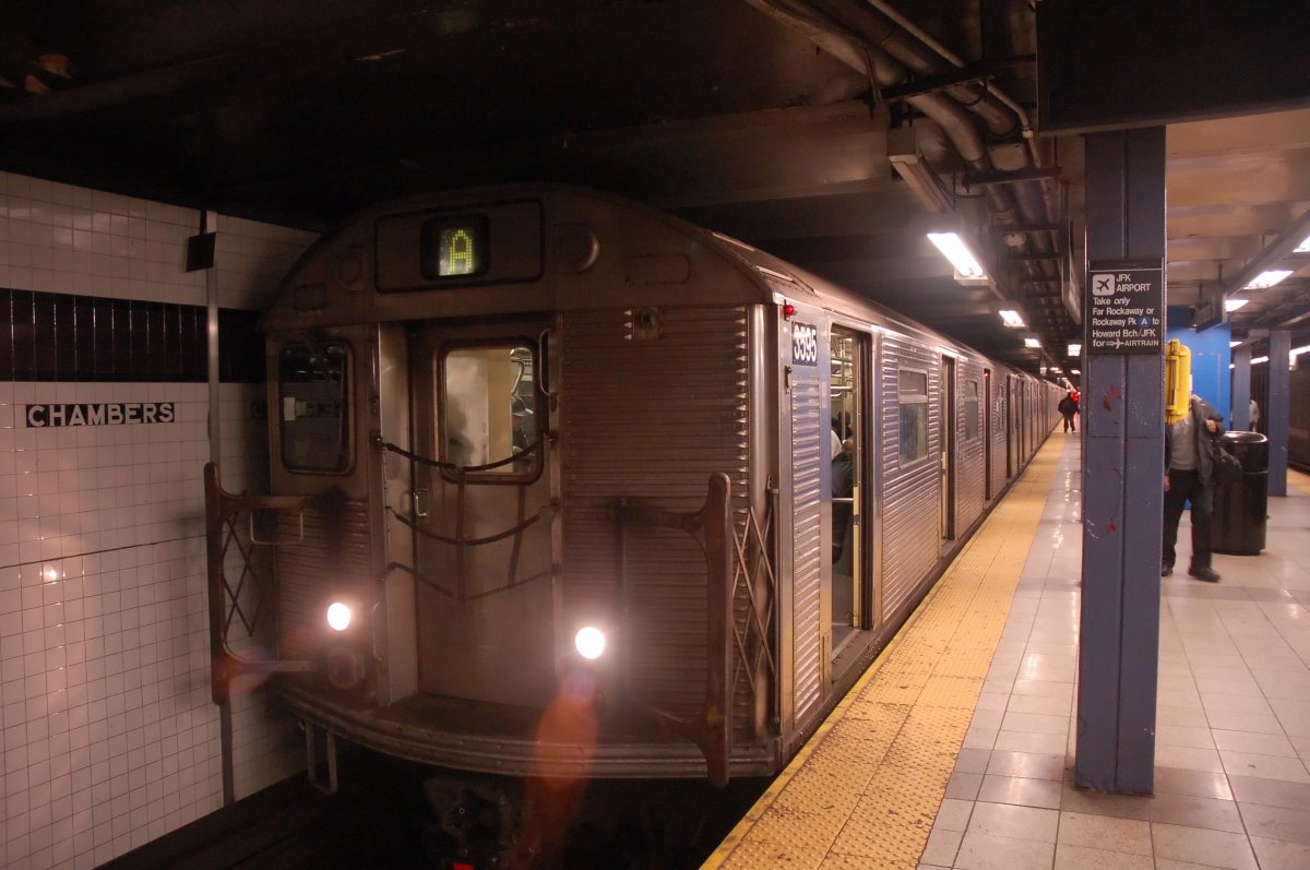 R-32GE 3595 @ Chambers St (A). Photo taken by Brian Weinberg, 4/5/2006.