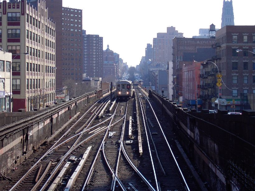 R-62A 2190 @ 125 St (1). Train is traveling northbound and is switching from the middle track to the northbound track. Photo taken by Brian Weinberg, 3/9/2003.