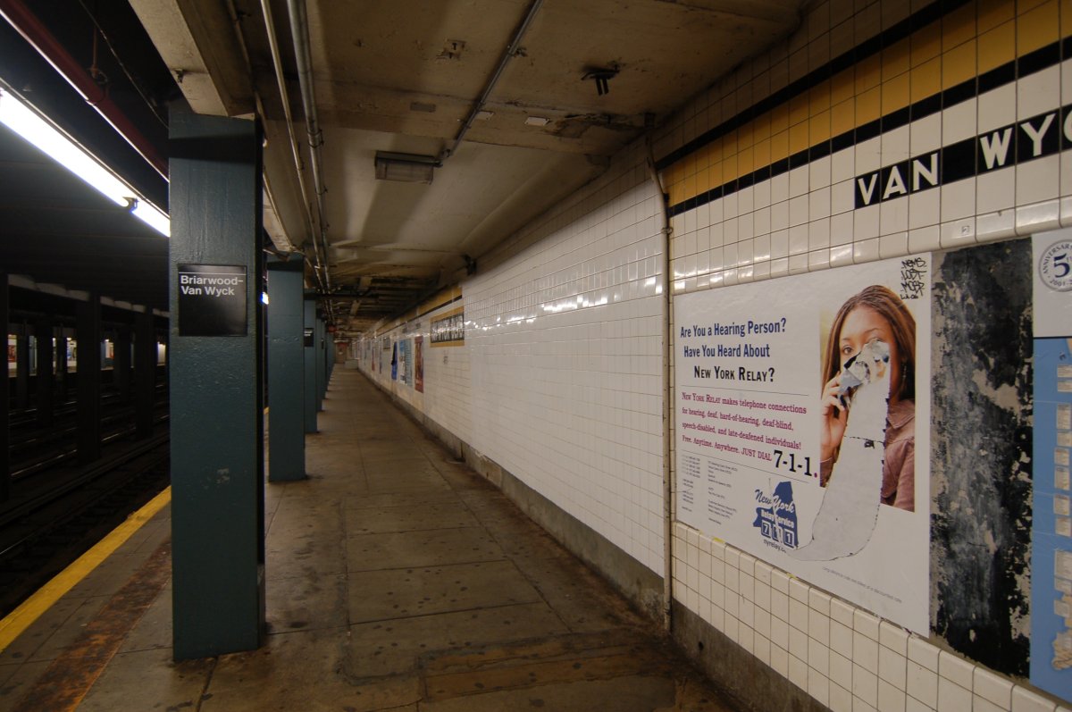 Briarwood - Van Wyck Blvd (E/F) - evidence of a removed staircase up to the mezzanine - middle of the Manhattan-bound platform.