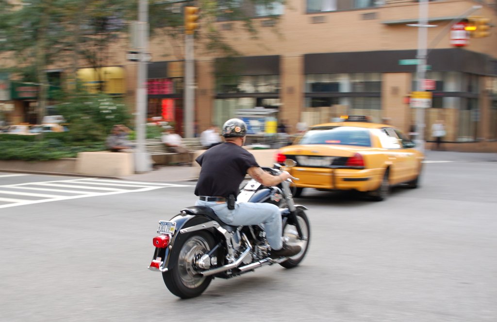 Motorcycle guy @ Broadway & 96th St. Photo taken by Brian Weinberg, 7/23/2006.