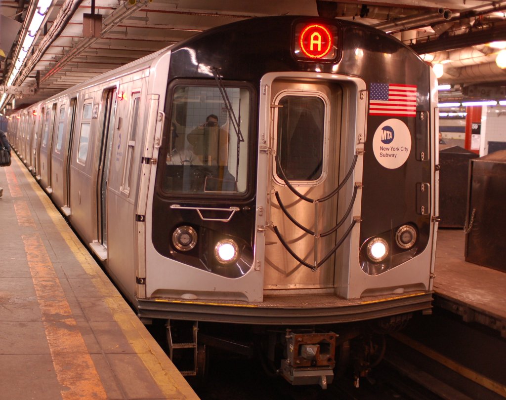 R-160A-2 8653 @ 59 St - Columbus Circle (A). Set is on 4th run of first day of 30-day test. Photo taken by Brian Weinberg, 10/16