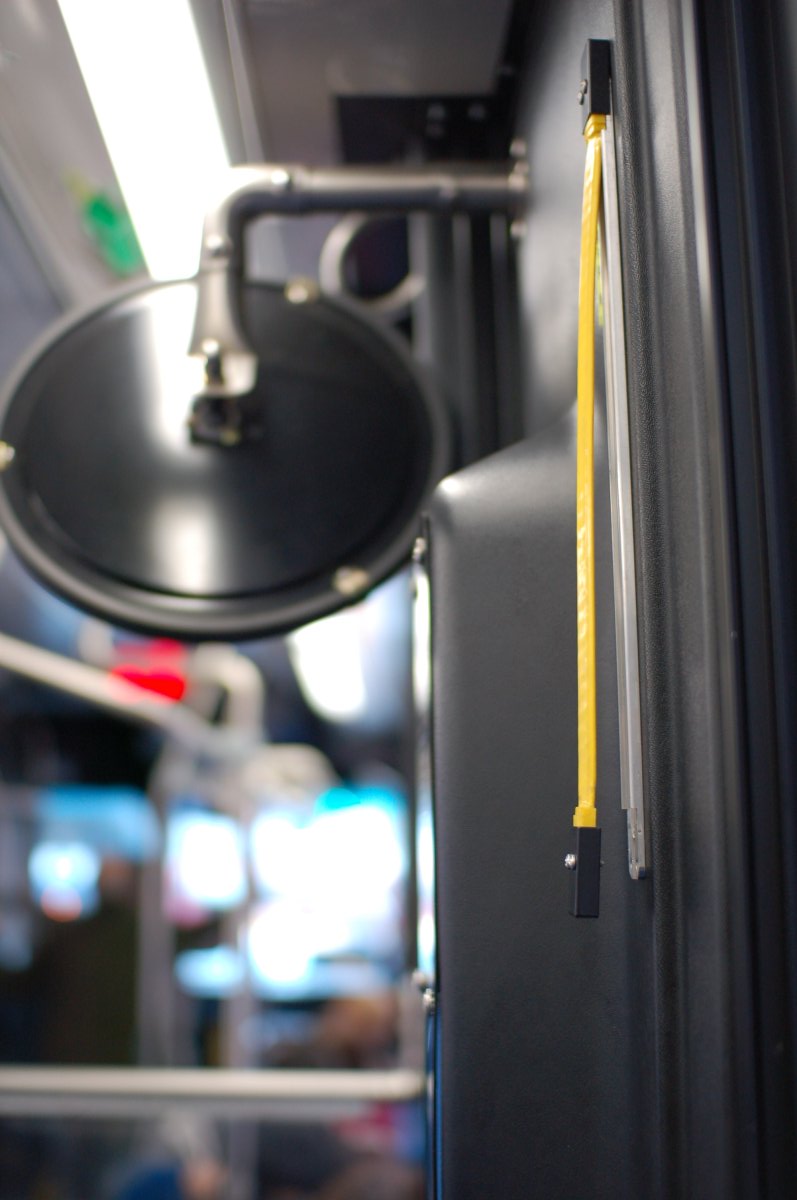 NYCT Orion VII 6635 (interior) @ 5 Av & 32 St (M5). Note the unscrewed stop-request tape. Photo taken by Brian Weinberg, 10/