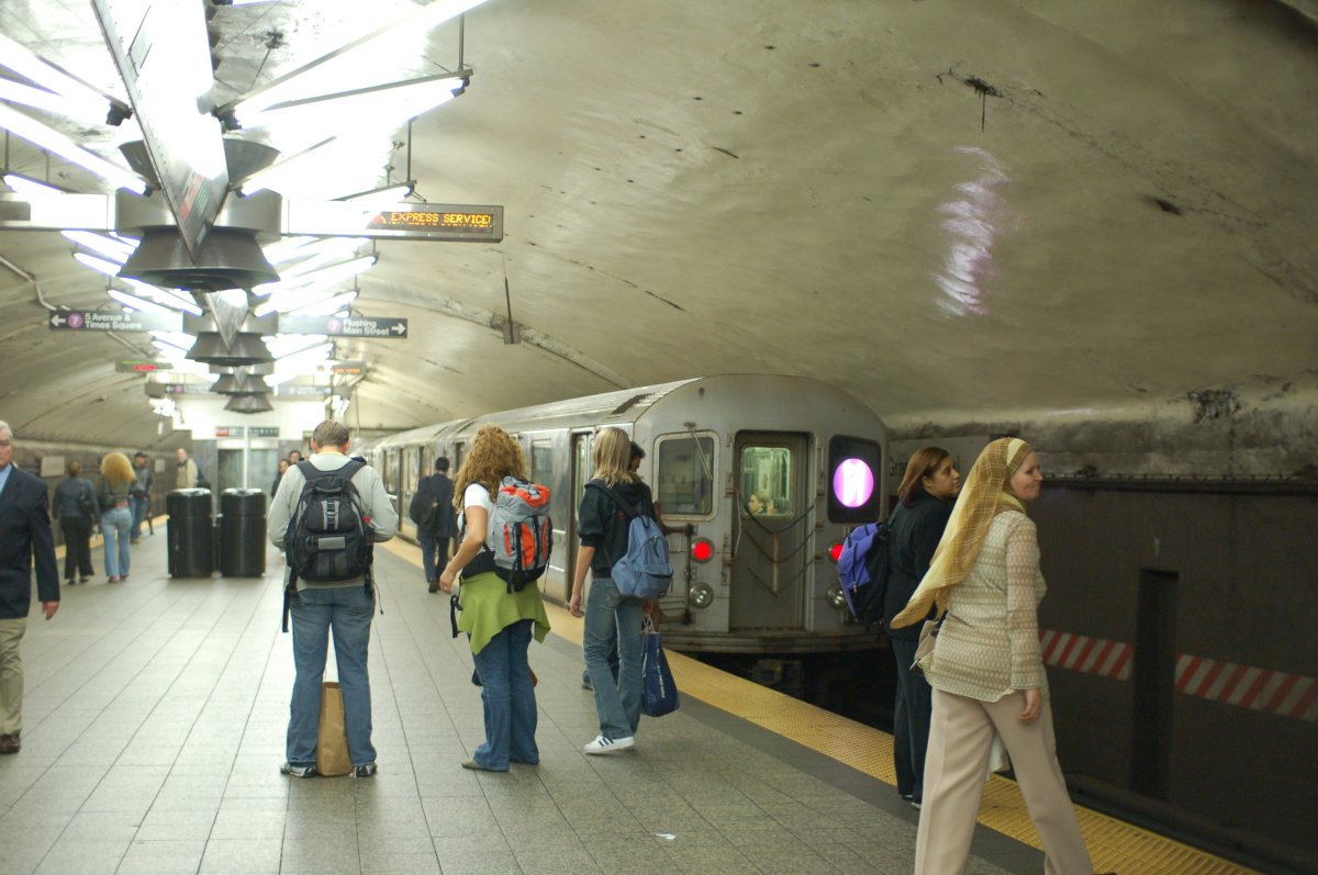 R-62A 2104 @ Grand Central - 42 St (7). Note that this was an 11-car train of all singles. Normally the car in this position wou