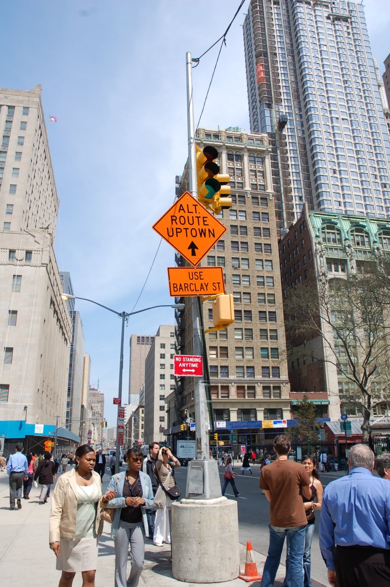 BBT to 9A alternate route via Trinity Pl slip ramp, Church St, and Barclay St. Photo taken by Brian Weinberg, 4/24/2007.