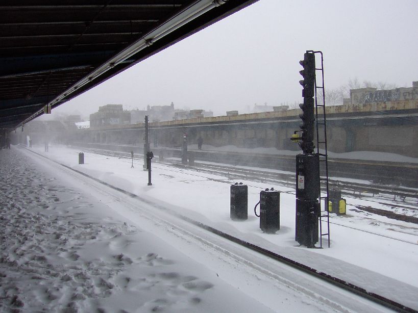 4 Av-9 St, after having just missed the last (F) [an R-32!] before the line was shut down. Photo taken by Brian Weinberg, 02/17/2003. This was the President's Day Blizzard of 2003.
