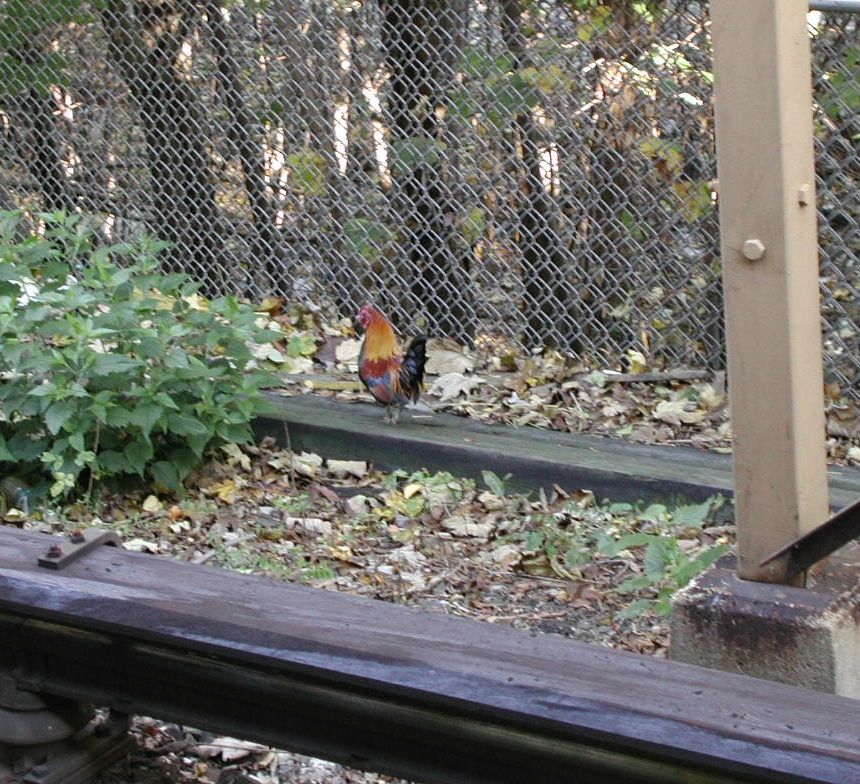 Full body shot of the rooster at Metropolitan Av Station small. Photo taken by Koi Morris.