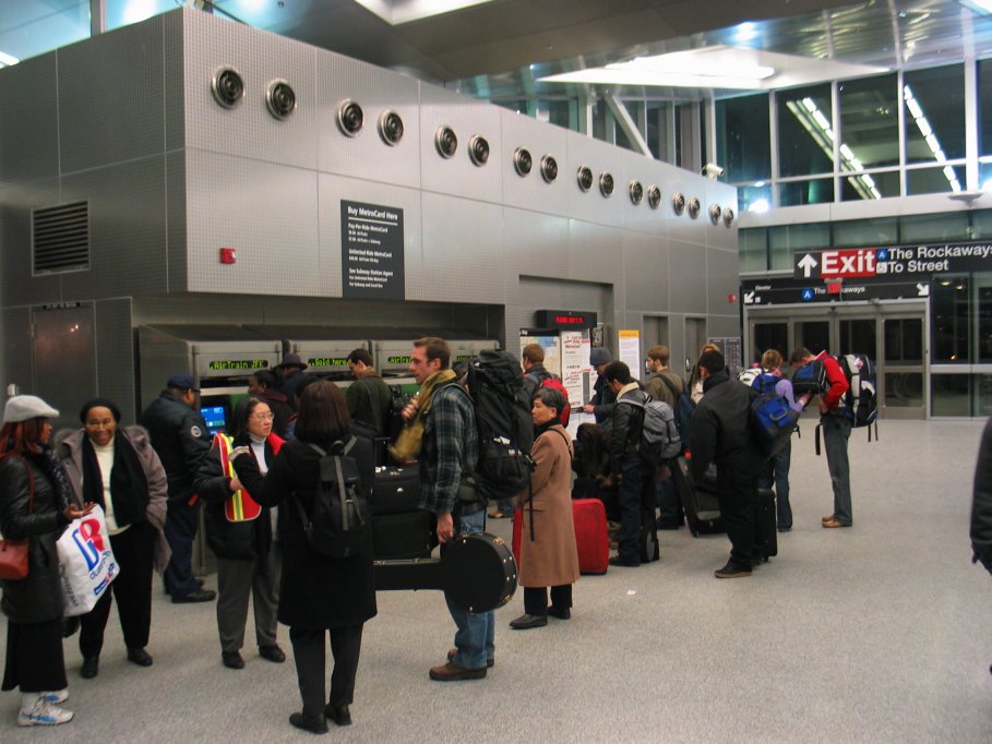 AirTrain customers who have come off the (A) @ Howard Beach are waiting to buy PPR's to pay the $5 AirTrain fare.