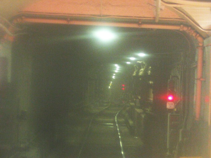 Looking out the anti-railfan window of a Journal Square bound PATH train @ Grove Street. The dark area at the left of the photo is the yard lead to the former Henderson Yard. This photo sucks and I will try to get a better one. Photo taken by Brian Weinbe