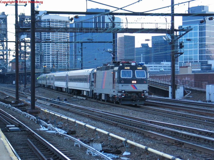 NJT ALP44 4410 @ Harrison, NJ, after sunrise on a cloudy day. Photo taken by Brian Weinberg, 2/18/2004.