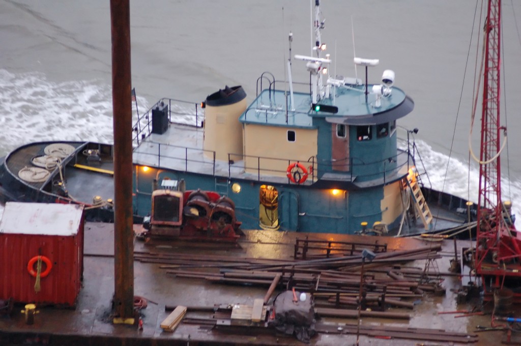 Spud barge @ Harlem River Ship Canal - having just passed under the raised Broadway Bridge. - Spud barge @ Harlem River Ship Canal - having just passed under the raised Broadway Bridge.