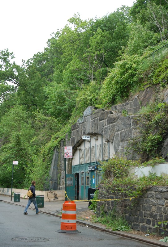 190 St (A). Entrance @ Bennett Ave & W 193 St. Note the rock cliff face. - 190 St (A). Entrance @ Bennett Ave & W 193 St. Note the rock cliff face.