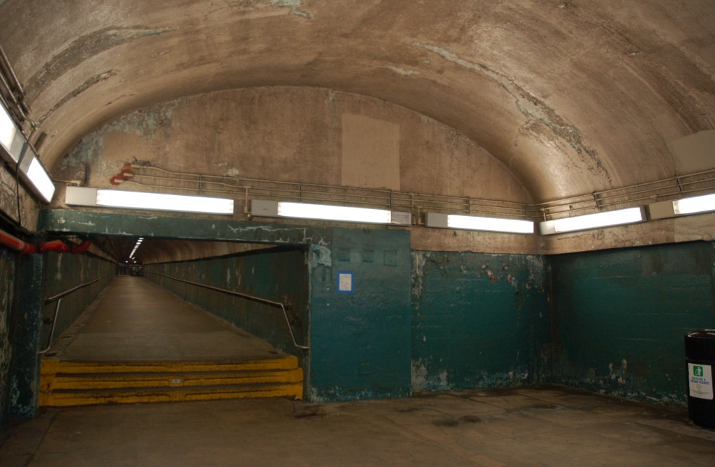 190 St (A). Entrance @ Bennett Ave & W 193 St. Looking west up the tunnel towards the platforms. - 190 St (A). Entrance @ Bennett Ave & W 193 St. Looking west up the tunnel towards the platforms.