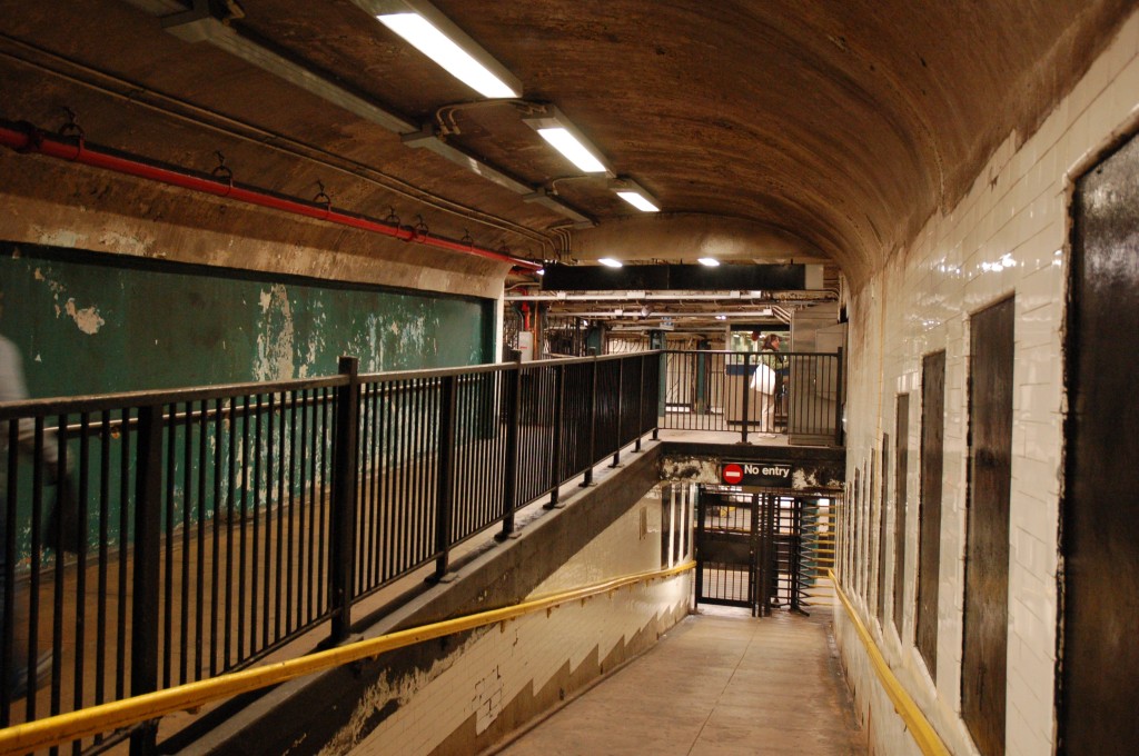 190 St (A). Entrance @ Bennett Ave & W 193 St. Looking west at fare control on upper level and platforms on lower level. - 190 St (A). Entrance @ Bennett Ave & W 193 St. Looking west at fare control on upper level and platforms on lower level.