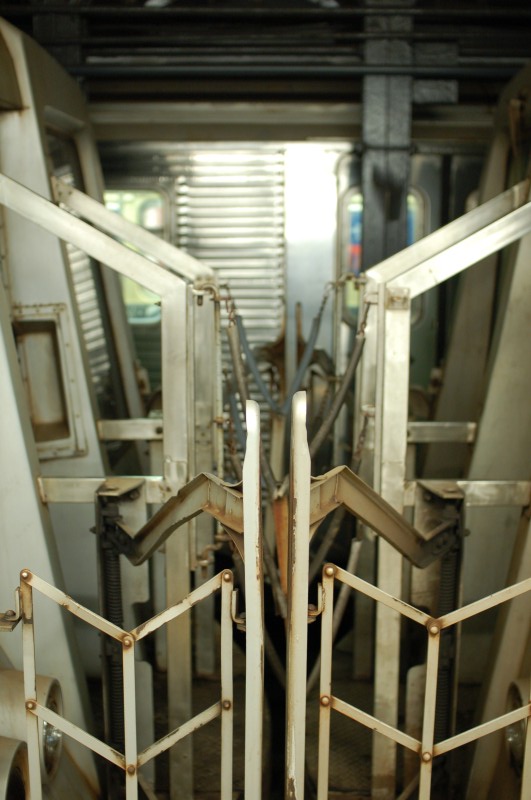 Pantograph gates between R-40 "Slants" 4256 and 4357 @ 34 St - Penn Station (A). - Pantograph gates between R-40 "Slants" 4256 and 4357 @ 34 St - Penn Station (A).