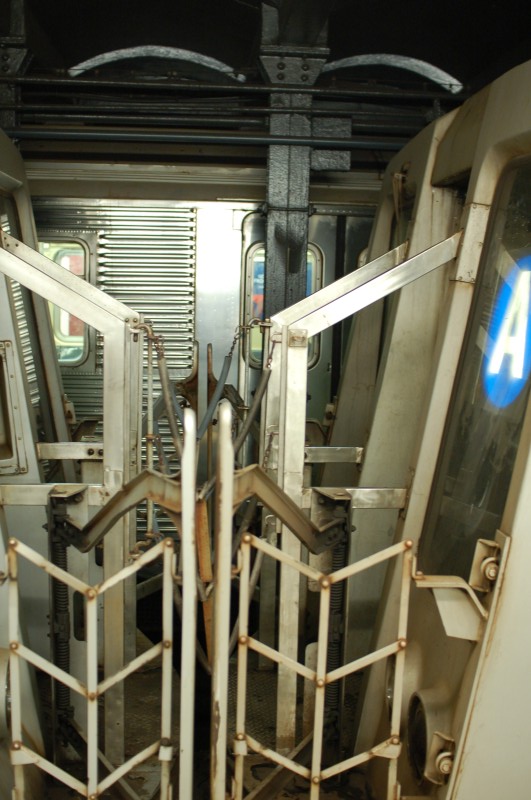 Pantograph gates between R-40 "Slants" 4256 and 4357 @ 34 St - Penn Station (A). - Pantograph gates between R-40 "Slants" 4256 and 4357 @ 34 St - Penn Station (A).