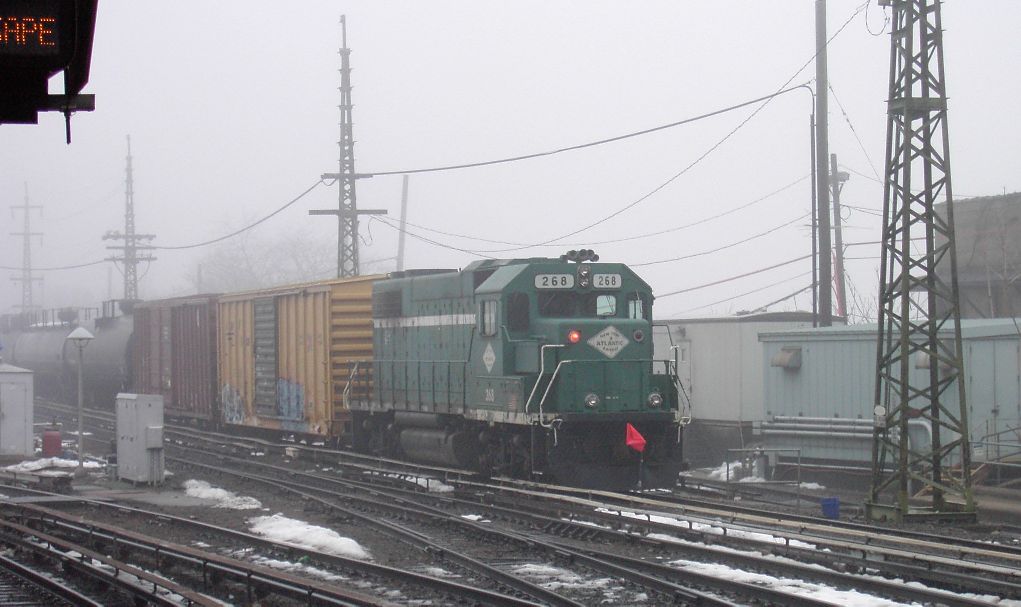 NY&A GP38-2 268 brings up the rear of a freight consist @ Jamaica. Photo taken by Brian Weinberg, 02/23/2003. (99kb)