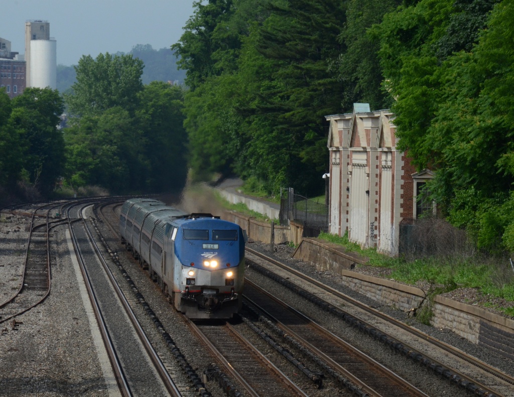 Amtrak P32AC-DM 714 with Train 284 @ the College of Mount St. Vincent (Hudson Line / Empire Service). - Amtrak P32AC-DM 714 with Train 284 @ the College of Mount St. Vincent (Hudson Line / Empire Service).