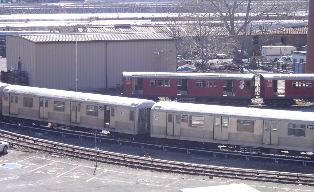 R-33ML 9218 and R-42 4775 & 4642 @ 207 St Yard. Photo taken by Brian Weinberg, 3/23/2003.