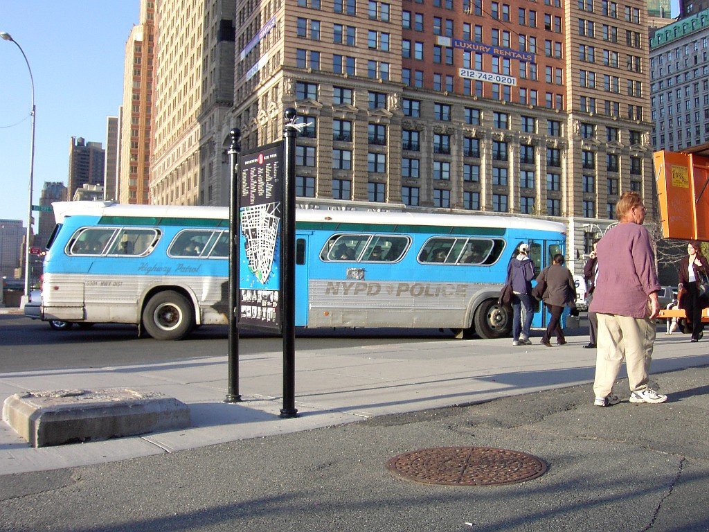 NYPD Police fishbowl bus @ Battery Place. - NYPD Police fishbowl bus @ Battery Place.