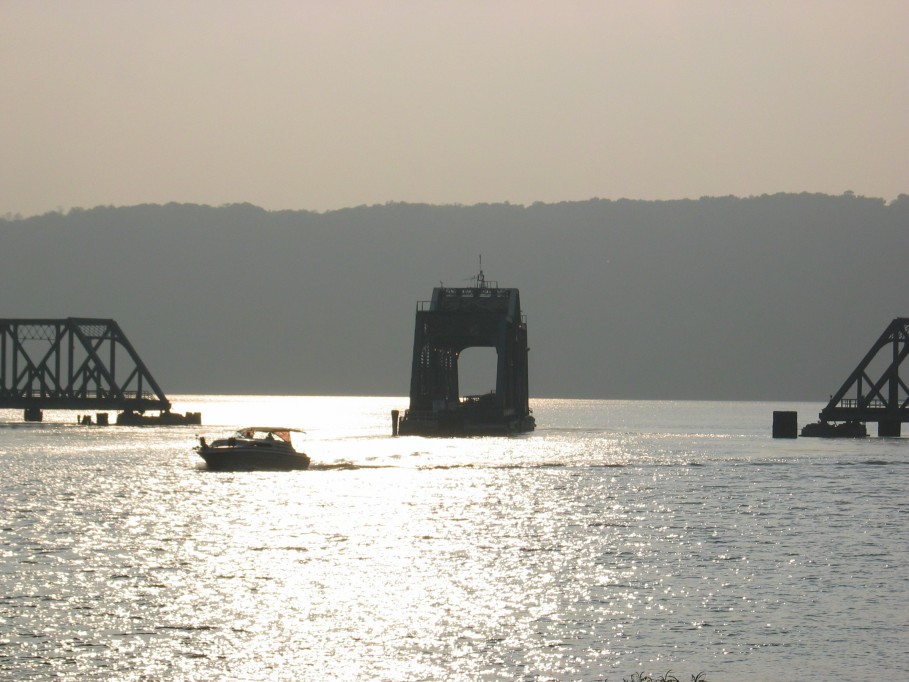 Spuyten Duyvil bridge in the open position. Photo taken by Brian Weinberg, 5/14/2004.