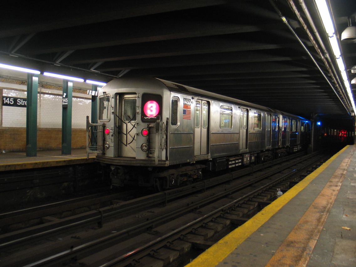 R-62 1450 @ 145 St (3). Train stopped for a minute, and then reversed direction. Photo taken by Brian Weinberg, 5/17/2004.