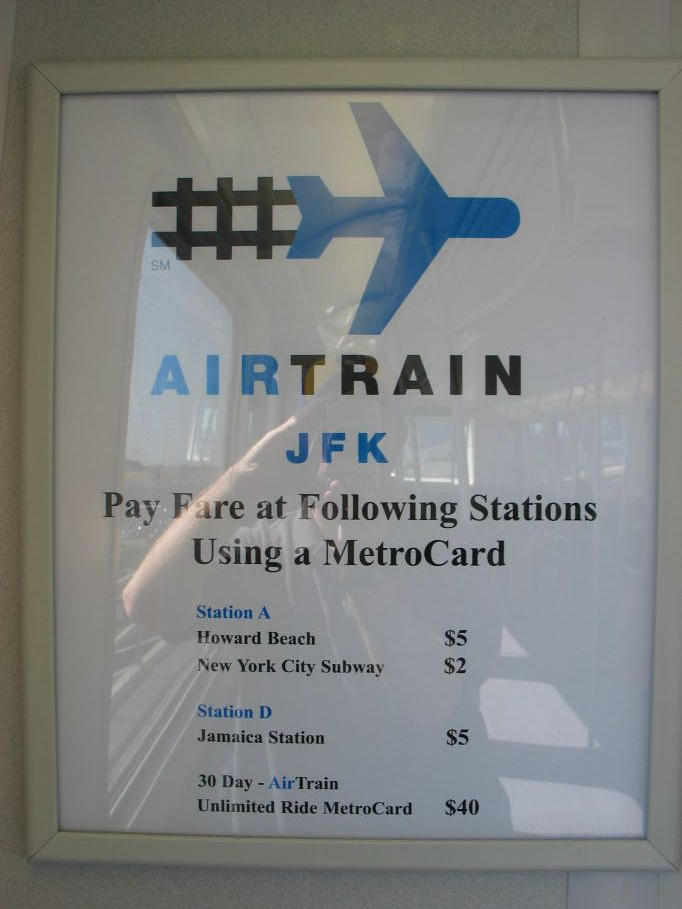 AirTrain fare poster now posted inside the vehicles. Photo taken by Brian Weinberg, 6/3/2004.