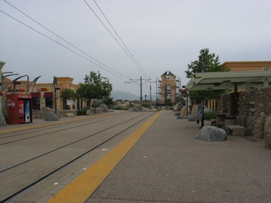 End of the San Diego Trolley Orange Line @ Santee Town Center. Photo taken by Brian Weinberg, 6/6/2004.